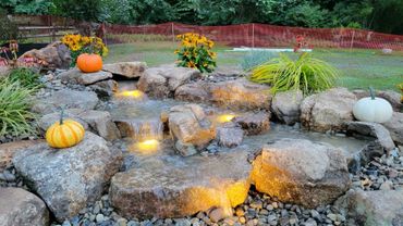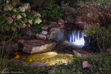 If you have a pond or a water garden feature, it is essential to have lights installed. Not having lights is like having a brand-new car with no fuel. If you are wondering about installing a custom pond lighting system, you've come to the right place. We recommend Aquascape Inc.'s LED models for underwater lighting, as they offer excellent versatility, installation possibilities, and value for your investment. Just ask us, and we will provide you with more information.